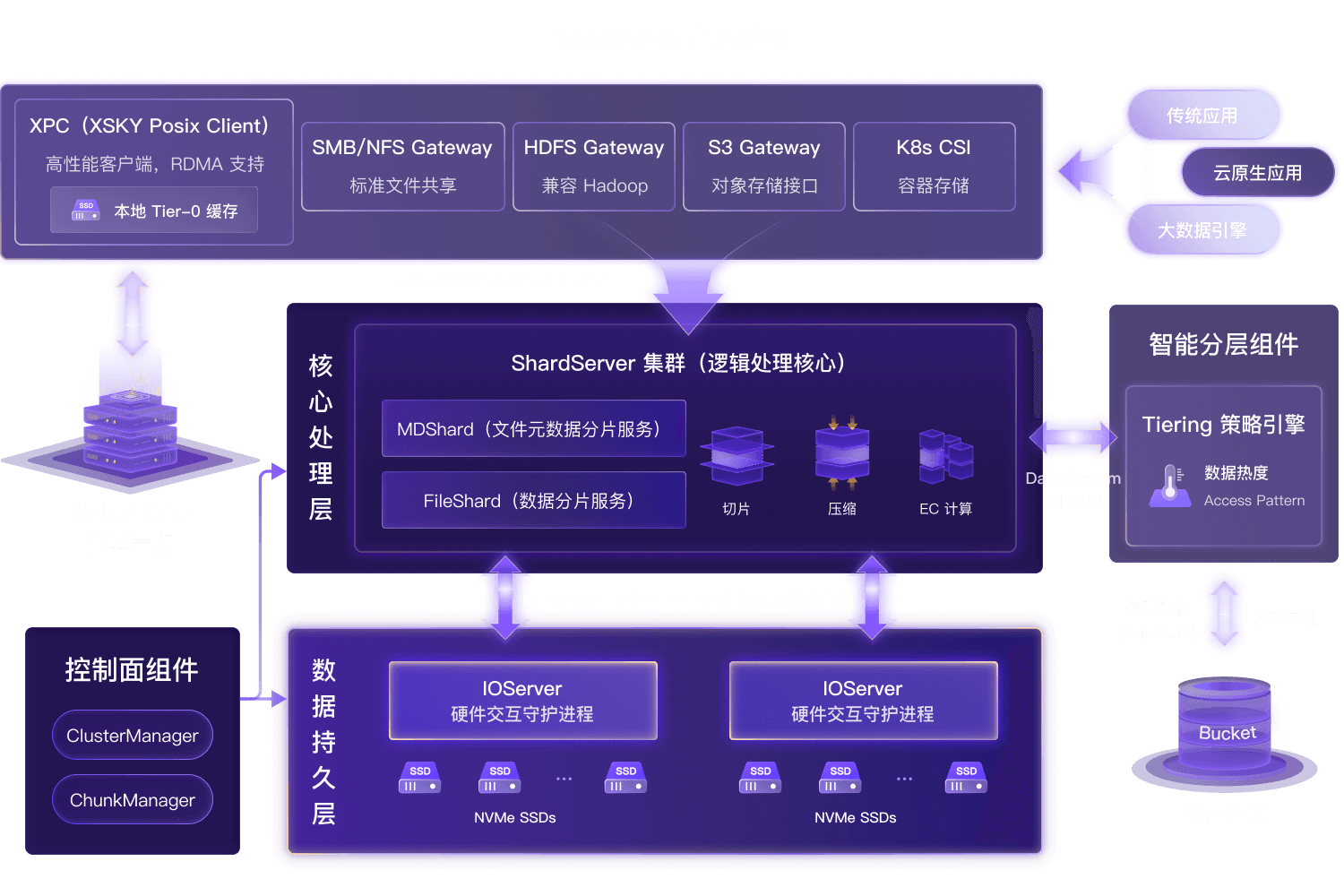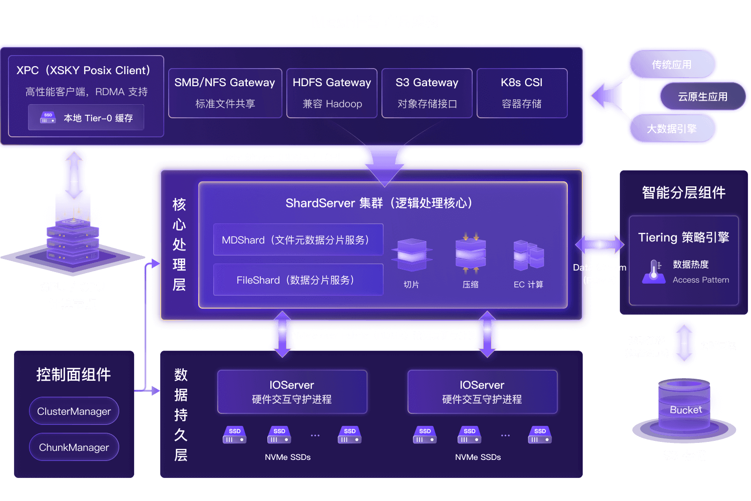 Tier-0 缓存层瞬间吸收大流量,后台异步刷盘,将 GPU 等待时间压至秒级。
